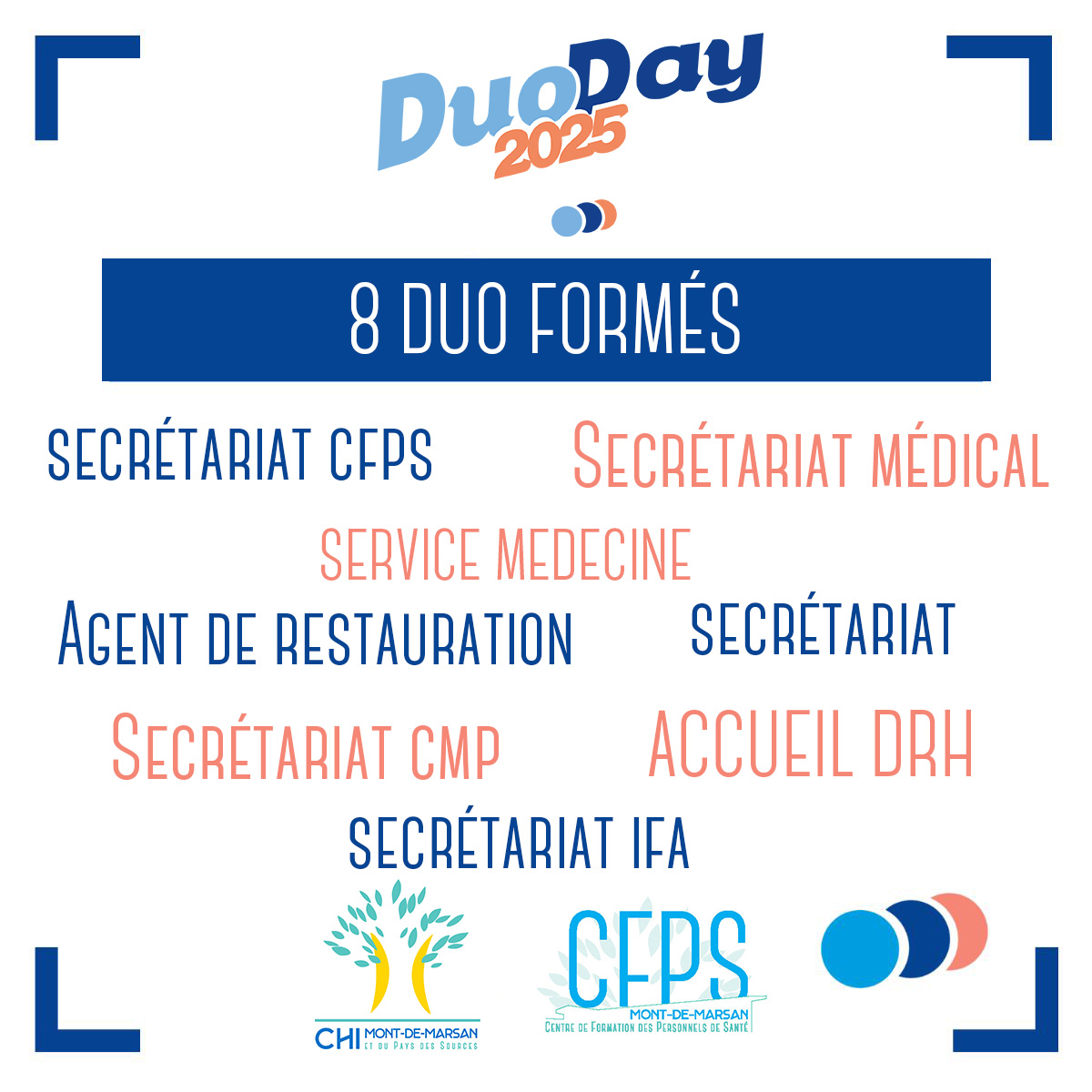 Le 20 novembre 2025, 8 duos ont été formés au sein de nos établissements à l’occasion du DUODAY.