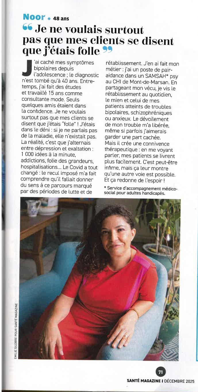 A lire dans Santé Magazine, le témoignage de Noor, pair-aidante au sein de l’équipe du #SAMSAH2IRP#SantéMentale …